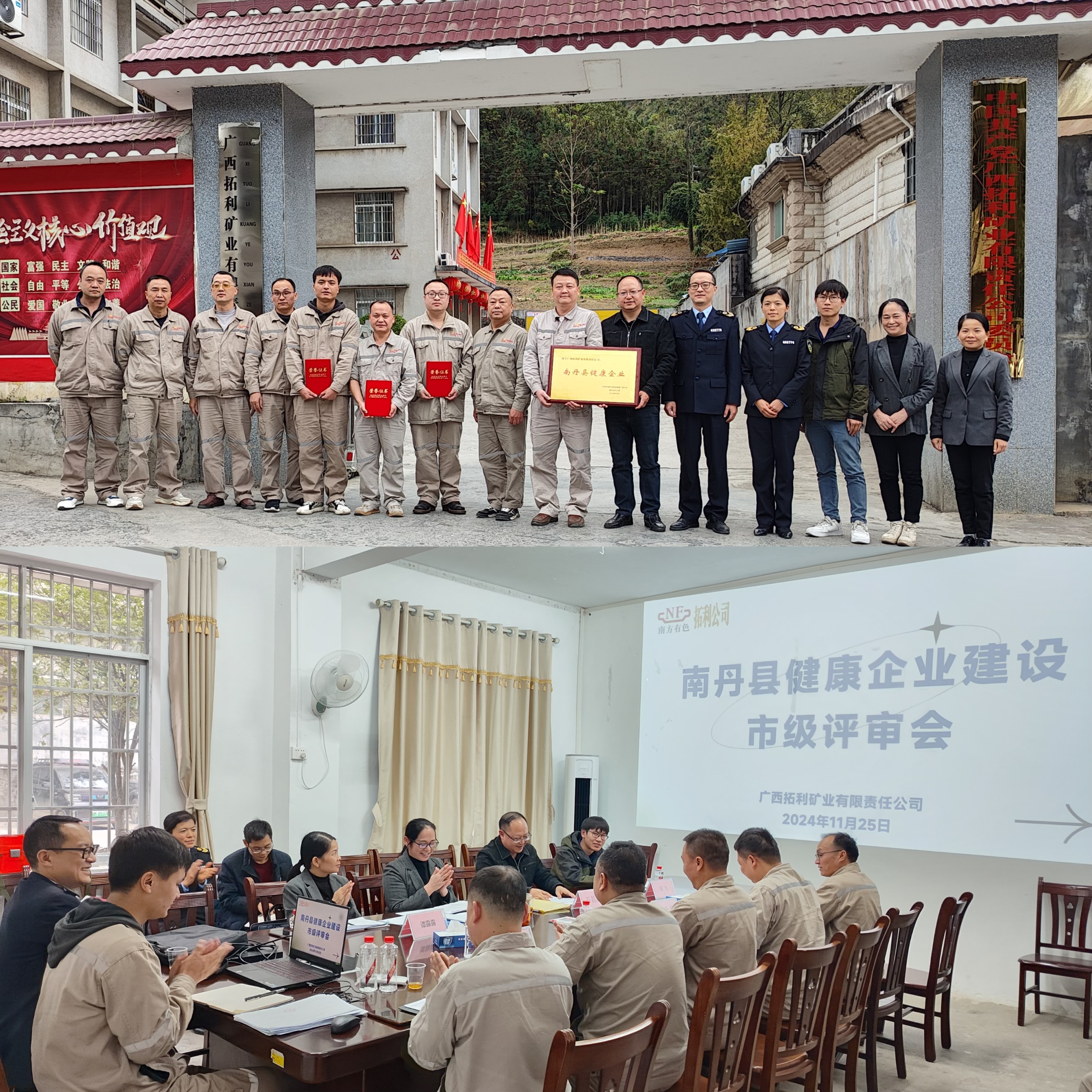 11月25日,南丹縣衛健委牽頭組織河池市中醫院、衛生監督所和醫保局等部門組成的聯合評審組到拓利公司開展2024年“河池市級健康企業”建設評審,拓利公司副總經理呂金鋒、總工程師賁仕恒等領導班子成員參加評審。